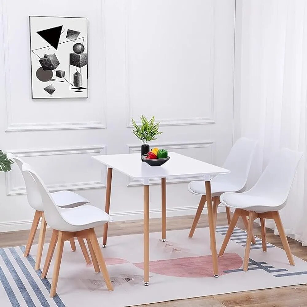 Chaises Salle a Manger Lot de 4, Chaises Scandinaves Blanche Chaise Cuisine avec Coussin de Siège en Cuir PU, Fauteuil Salle a Manger avec Pieds en Hêtre (Blanche, 4pcs)