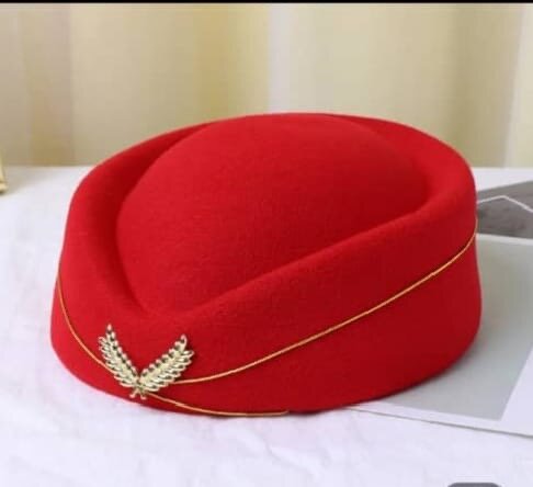 Chapeau femme élégant et tendance, rouge, orné de détails dorés. Parfait pour compléter votre tenue avec style.