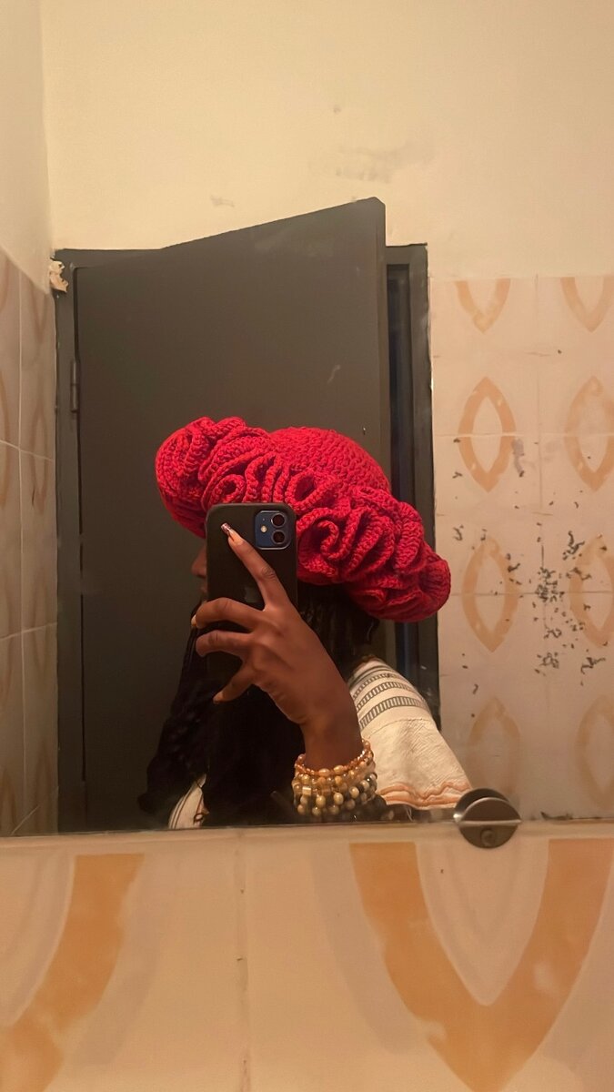 Fait main avec finesse, ce béret audacieux mêle volume et élégance grâce à ses ondulations sculptées façon ruffle. Parfait pour affirmer ton style avec une touche artisanale et afro-chic.