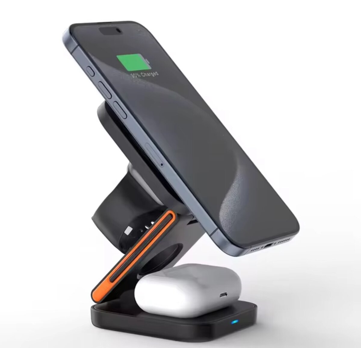 Chargeur 3 en 1 : Rechargez votre téléphone, montre connectée et écouteurs en même temps avec un seul support pratique et élégant.