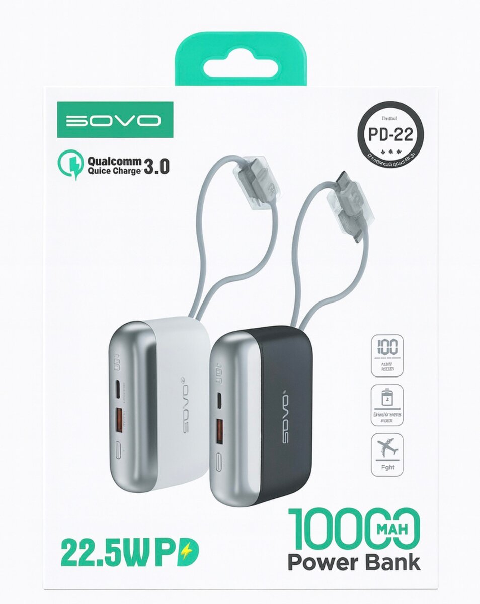 Puissant power bank de 10000mAh avec technologie Qualcomm 3.0. Idéal pour voyager et garder vos appareils chargés en tout temps.
