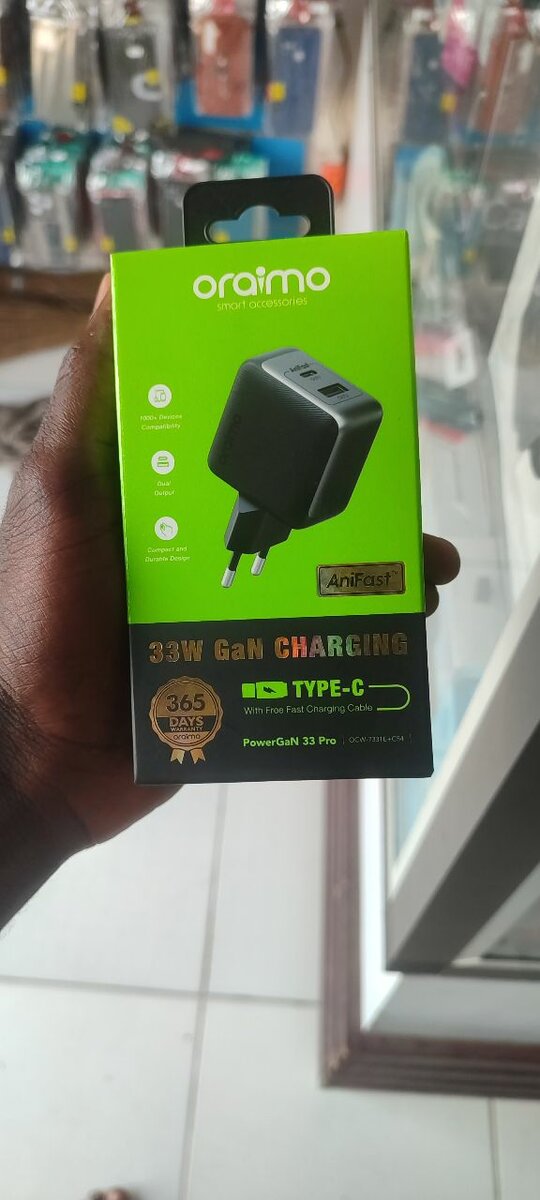 Optez pour la puissance avec le chargeur Oraimo 33W GaN. Compact, rapide et efficace, idéal pour vos appareils USB-C. Parfait pour la maison ou le bureau, assure une charge rapide et sécurisée.