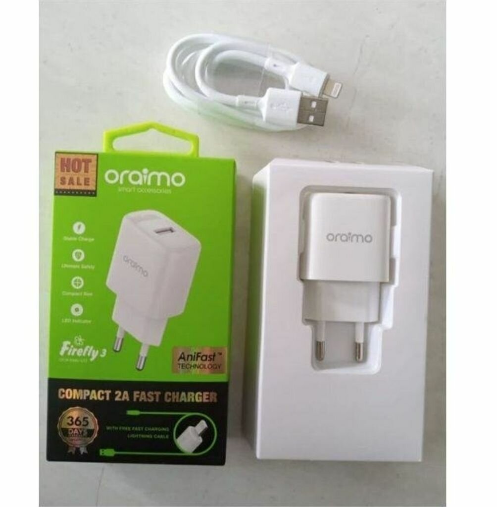 Profitez d'une recharge rapide et efficace avec le chargeur Oraimo 2A. Compact et puissant, il est parfait pour un usage quotidien à la maison ou en voyage. Compatible avec une large gamme d'appareils, il optimise le temps de charge. Idéal pour ceux qui souhaitent un chargeur fiable et durable.