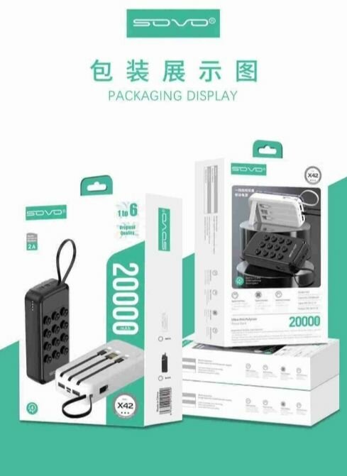 Le chargeur portable SOVO 20000mAh est votre compagnon idéal pour rester connecté en toute circonstance. Avec sa capacité impressionnante et ses multiples ports, il permet de recharger plusieurs appareils simultanément. Compact et puissant, il est parfait pour les voyages ou une utilisation quotidienne. Ne soyez jamais à court d'énergie!