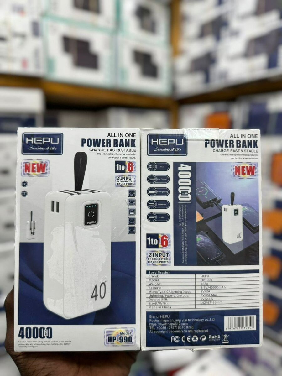 Optez pour ce power bank 40000mAh de HEPU, idéal pour charger vos appareils rapidement et en toute sécurité. Sa capacité élevée assure une autonomie prolongée où que vous soyez. Parfait pour les longs voyages.
