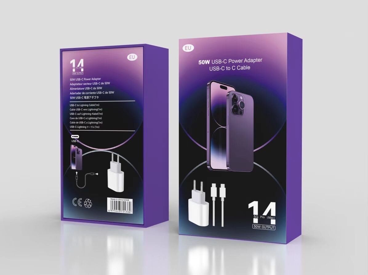 Optez pour une charge ultra-rapide avec ce chargeur 50W USB-C. Compatible avec de nombreux appareils, il est idéal pour votre smartphone, tablette et plus encore. Ce kit comprend un câble USB-C vers USB-C pour une efficacité maximale.