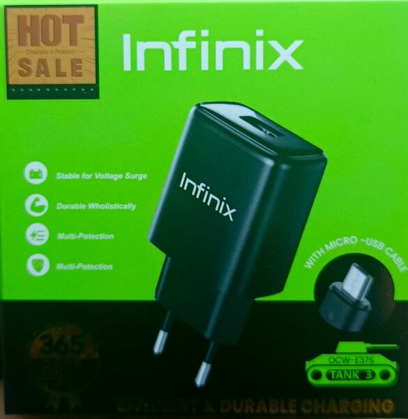 Optez pour le chargeur rapide Infinix 6A pour une recharge efficace et stable de vos appareils. Compatible avec divers appareils pour une utilisation universelle. Idéal pour la maison ou le bureau.