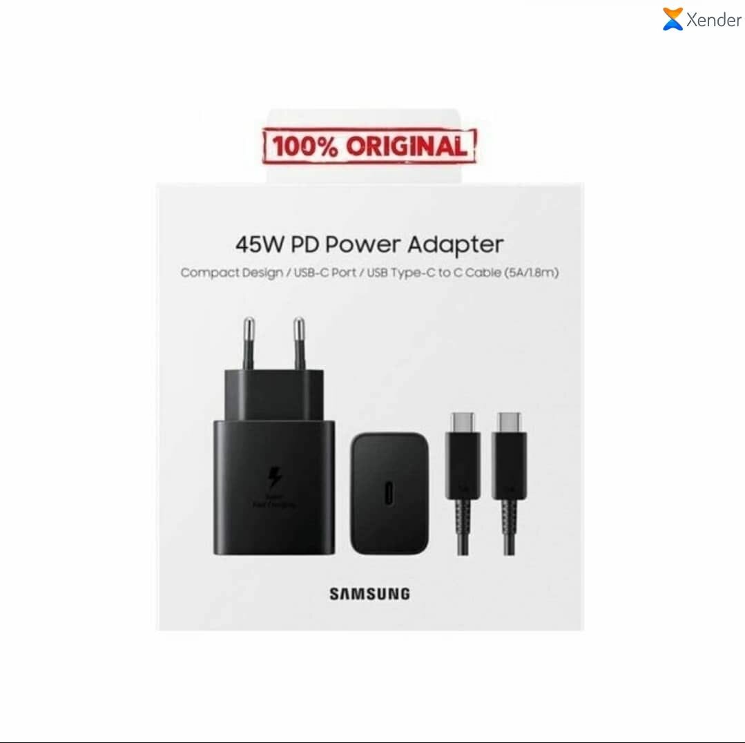 Chargeur rapide Samsung 45W PD, design compact, port USB-C, câble USB Type-C, 5A/1.8m. Charge rapide et sécurisée pour vos appareils Samsung.