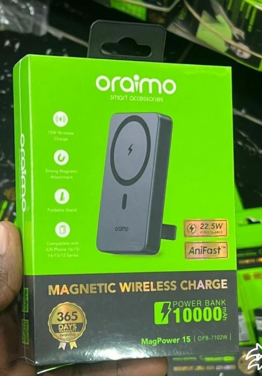 Profitez d'une charge rapide et efficace avec le chargeur sans fil magnétique Oraimo. Compatible avec appareils jusqu'à 15W, support réglable intégré pour une utilisation pratique.