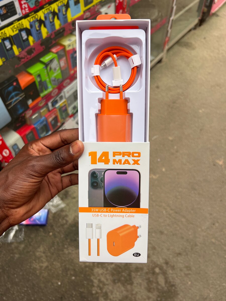 Chargeur USB-C 20W avec câble Lightning pour iPhone 14 Pro Max. Conçu pour une charge rapide et efficace, cet ensemble est idéal pour les utilisateurs d'iPhone.