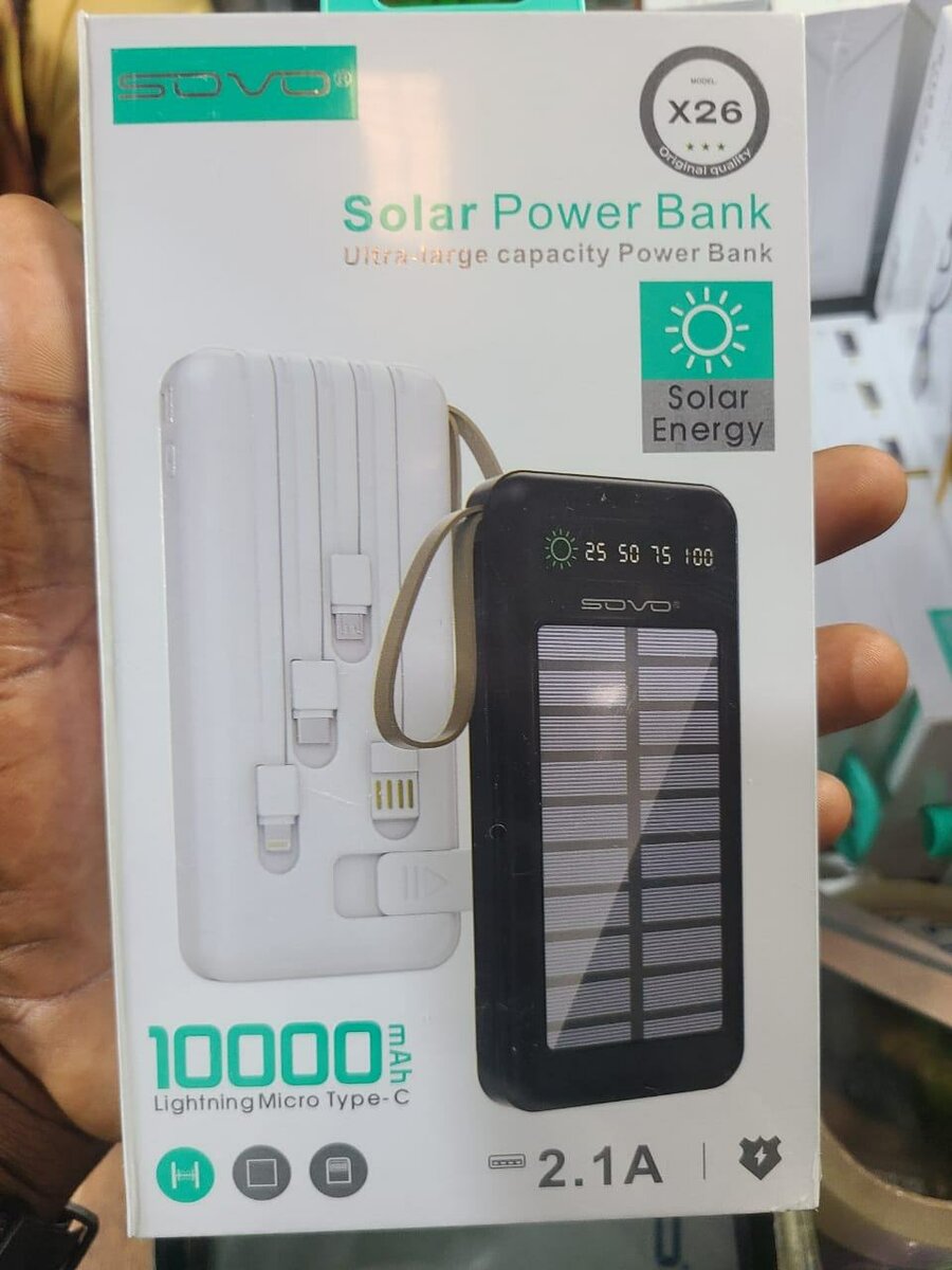 Découvrez notre chargeur solaire portable de 10000mAh, idéal pour recharger vos appareils en déplacement. Grâce à l'énergie solaire, restez connecté où que vous soyez. Complet avec connectique Lightning, Micro et Type-C, il est parfait pour tous vos appareils.
