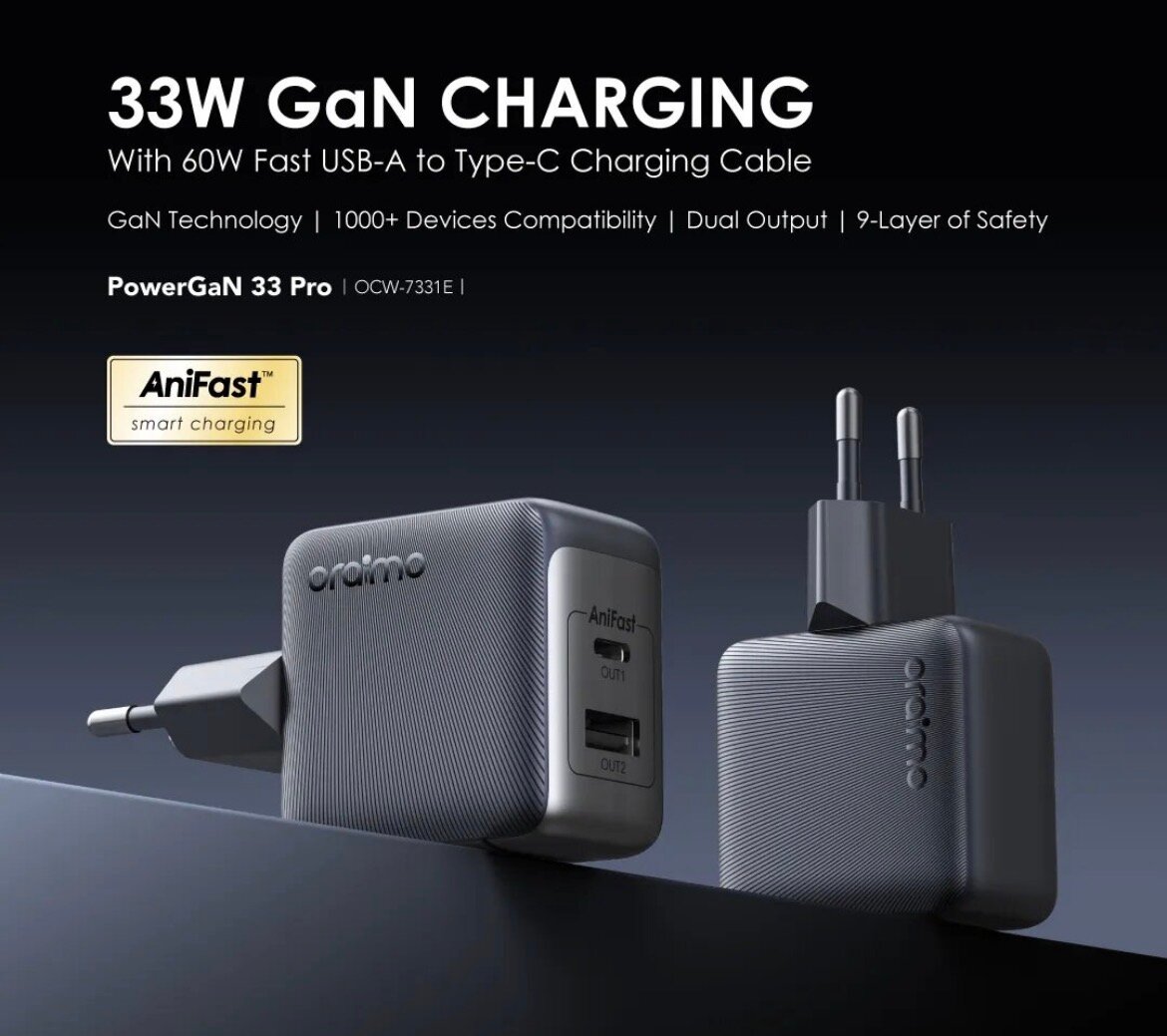 Chargeur Rapide HyperGaN 33 Pro 33W Oraimo