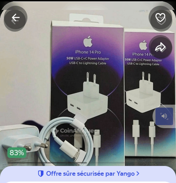 Optimisez la charge de votre iPhone 14 Pro avec ce chargeur USB-C de 50W. Accompagné d'un câble USB-C vers Lightning, il assure une recharge rapide et efficace de vos appareils. Idéal pour la maison ou le bureau, il offre durabilité et performance. Ne ratez jamais une charge grâce à cet accessoire indispensable.