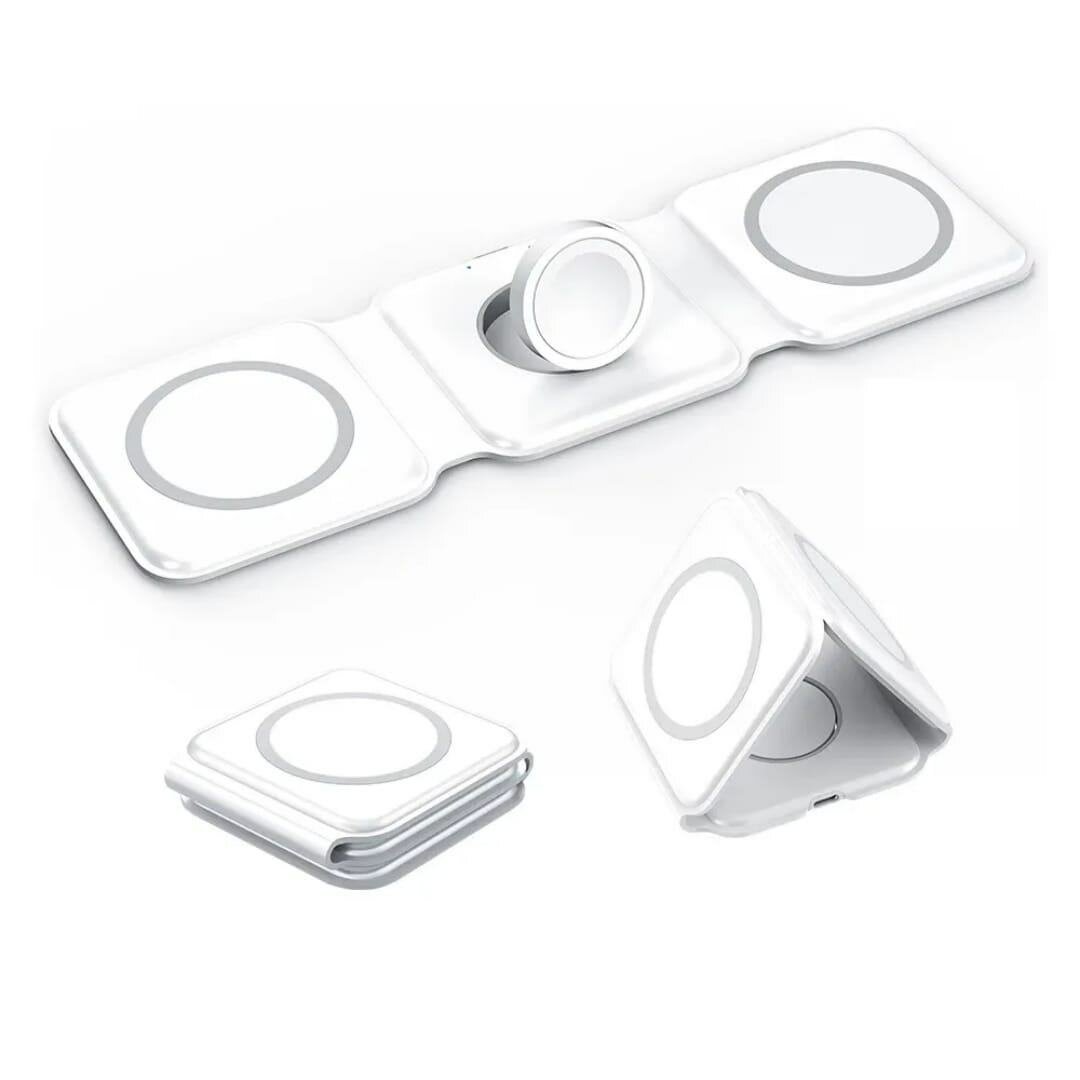 2. Idéal pour les voyageurs : Le chargeur magnétique sans fil 3 en 1 offre commodité et facilité grâce à son design léger et compact. Pliez-le simplement et transportez-le dans votre sac à dos ou votre poche et gardez vos appareils souvent chargés.