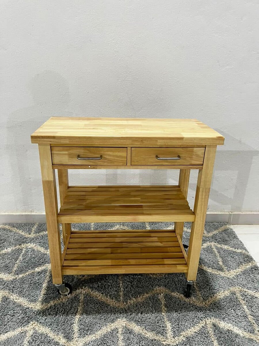 Optimisez votre espace avec ce chariot de cuisine en bois au style moderne. Doté de deux tiroirs et deux étagères, il offre un espace de rangement pratique. Les roulettes permettent un déplacement facile. Idéal pour la cuisine ou le salon, ce chariot polyvalent rend votre organisation plus efficace.