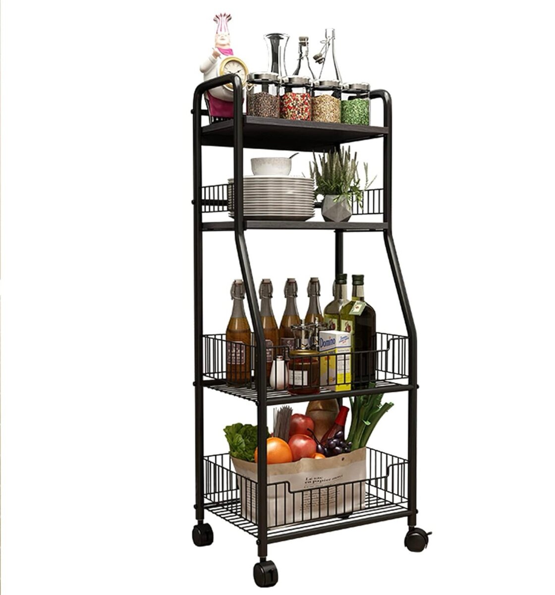 Chariot de rangement roulant: La construction robuste en plastique et en acier inoxydable, deux poignées ergonomiques et quatre roulettes rotatives à 360 ° vous permettent de déplacer et d'utiliser facilement ce chariot de rangement roulant mince où vous le souhaitez, il se tient également uniformément sur les sols inégaux puisque les roulettes sont réglables