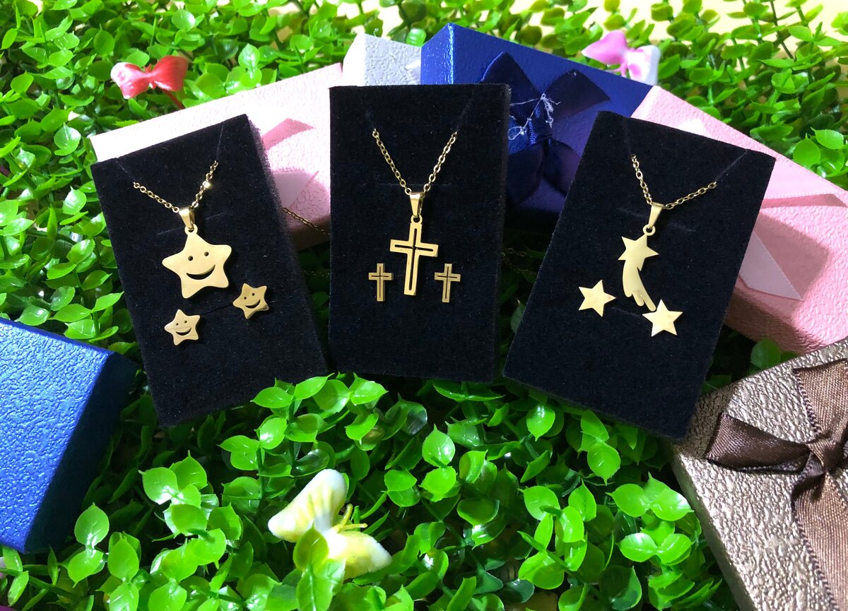 Découvrez cet ensemble de colliers et boucles d'oreilles en doré, mettant en avant des motifs de croix, d'étoiles et de comètes. Parfait pour une touche élégante et unique à votre tenue quotidienne ou lors d'occasions spéciales.