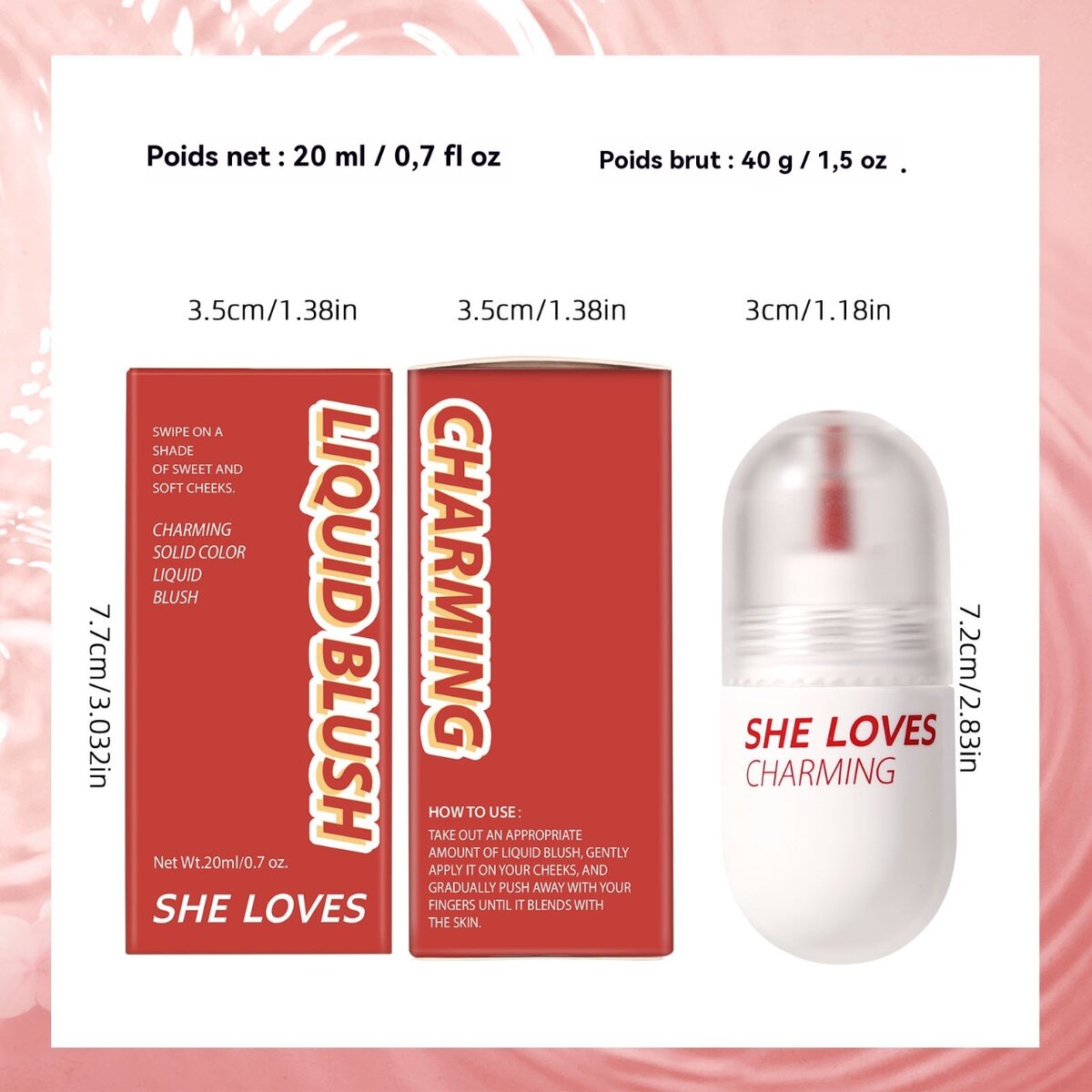 Découvrez le blush liquide "Charming" de She Loves pour des joues douces et soyeuses. Facile à appliquer, il apporte une couleur éclatante en un seul geste. Format pratique de 20 ml, idéal pour votre trousse beauté. Parfait pour un look naturel au quotidien!