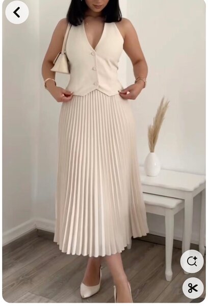 Halter Neck Single Breasted Vest And Pleated Skirt Two Piece