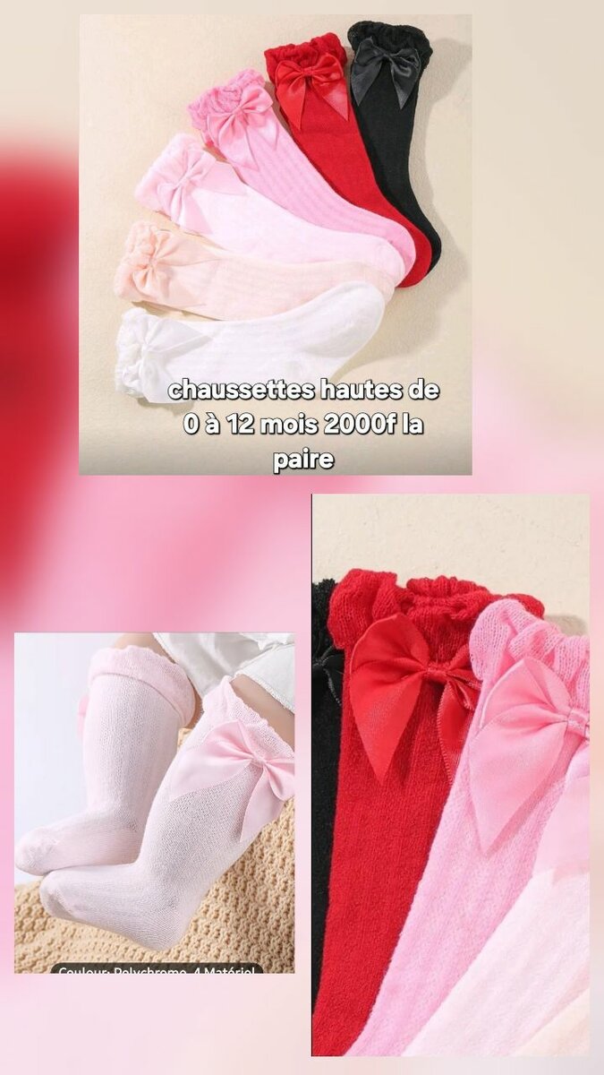 Chaussettes hautes pour bébés filles de 0 à 12 mois. Douces et confortables, avec nœud décoratif. Idéales pour les tenues élégantes.