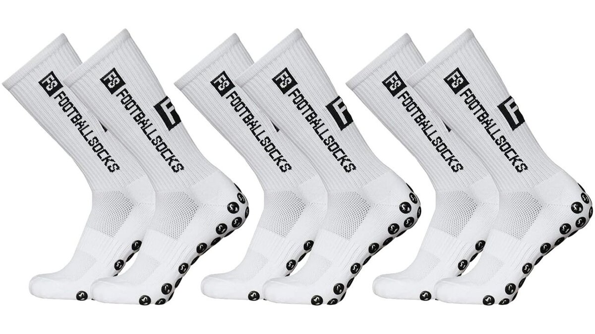 Chaussettes de football blanches avec semelle antidérapante pour une adhérence parfaite. Idéales pour les joueurs de football.