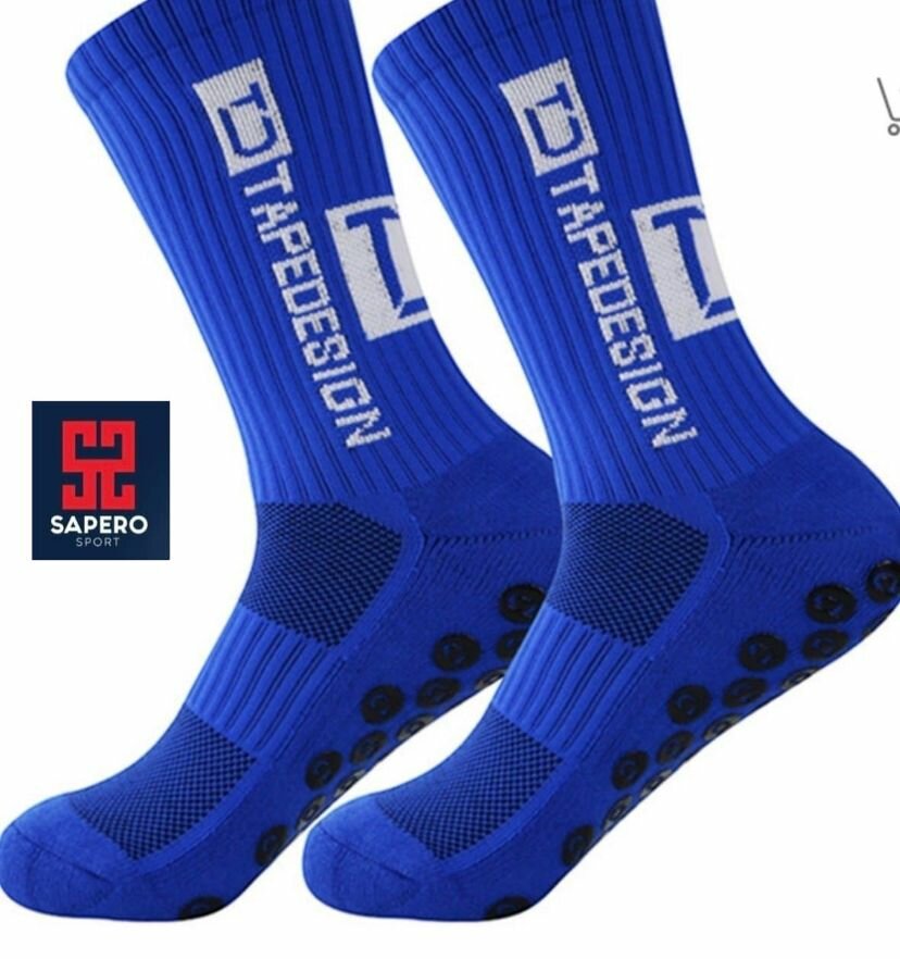 Chaussettes sport bleu avec design antidérapant, idéales pour le football et le basketball. Conçues pour maximiser l'adhérence et le confort. Parfaites pour les athlètes cherchant performance et sécurité.