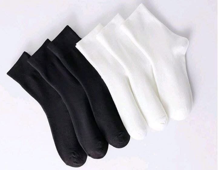 Chaussettes en coton confortables et respirantes, idéales pour un usage quotidien. Lot de deux paires, noir et blanc. Parfait pour toute saison, offre un design classique et s'adapte facilement à toutes les tenues.
