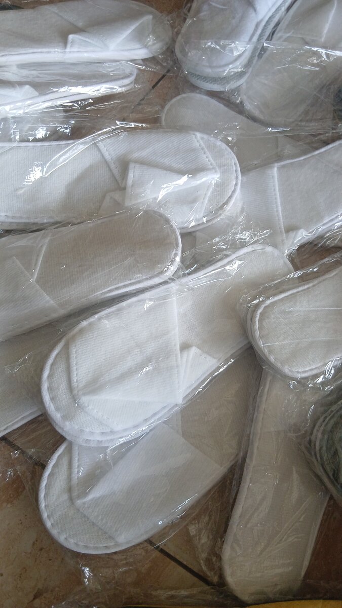 Chaussons jetables blancs, parfaits pour l'hospitalité ou un usage domestique. Confortables et pratiques, idéals pour les invités. Offrez une sensation de luxe et de propreté.