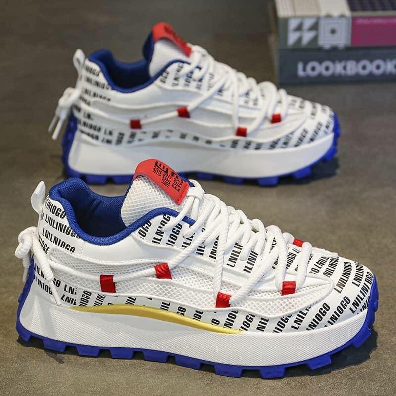 Chaussures Nike blanches rouges et bleues