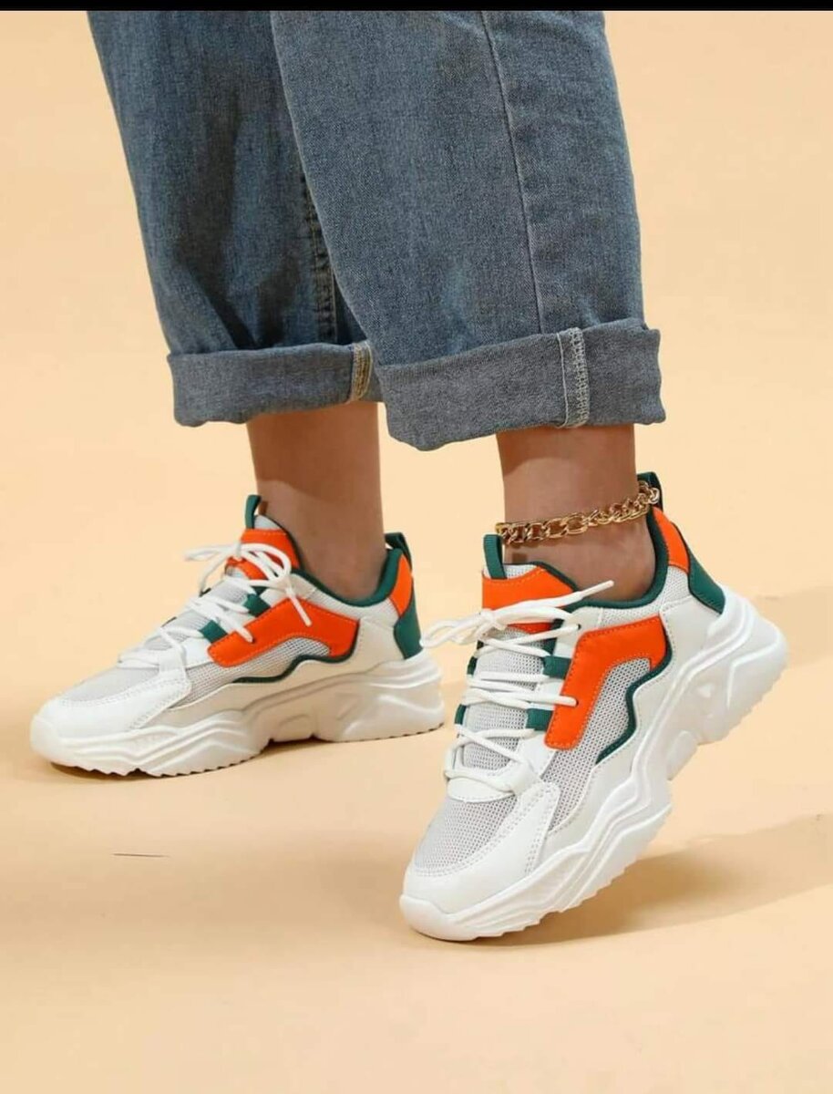 Baskets femmes orange et vert