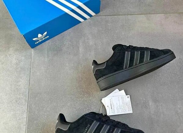 Découvrez ces baskets Adidas entièrement noires, fabriquées en cuir. Élégantes et confortables, elles sont parfaites pour une tenue décontractée ou pour le sport. Disponibles avec des lacets et un design minimaliste.