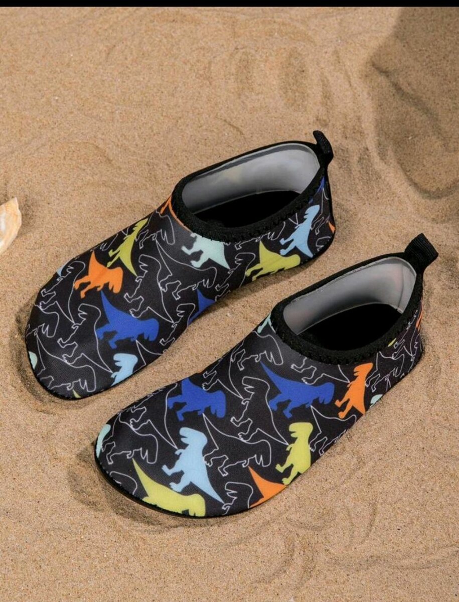 Parfaites pour la plage ou la piscine, ces chaussures aquatiques unisexes avec motif dinosaure offrent confort et protection. Léger et facile à enfiler, idéal pour enfants et adultes.