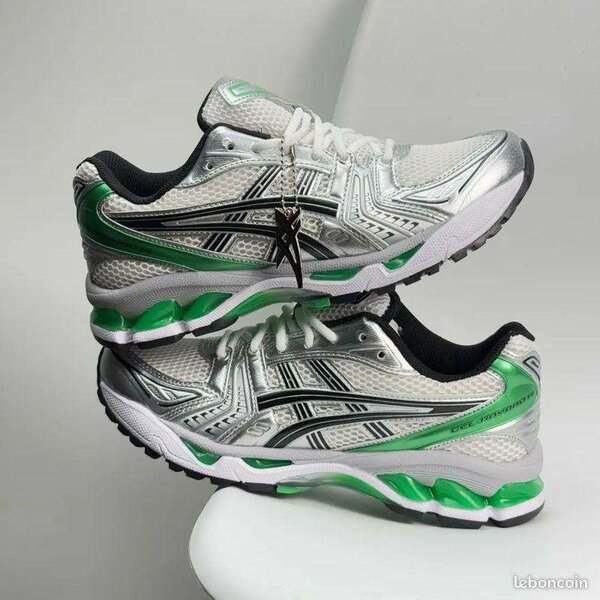 Découvrez les chaussures Asics, conçues pour le running et les activités sportives. Avec leur design blanc et vert, elles offrent confort et performance. Fabriquées avec des matériaux de haute qualité, elles sont idéales pour les coureurs exigeants.