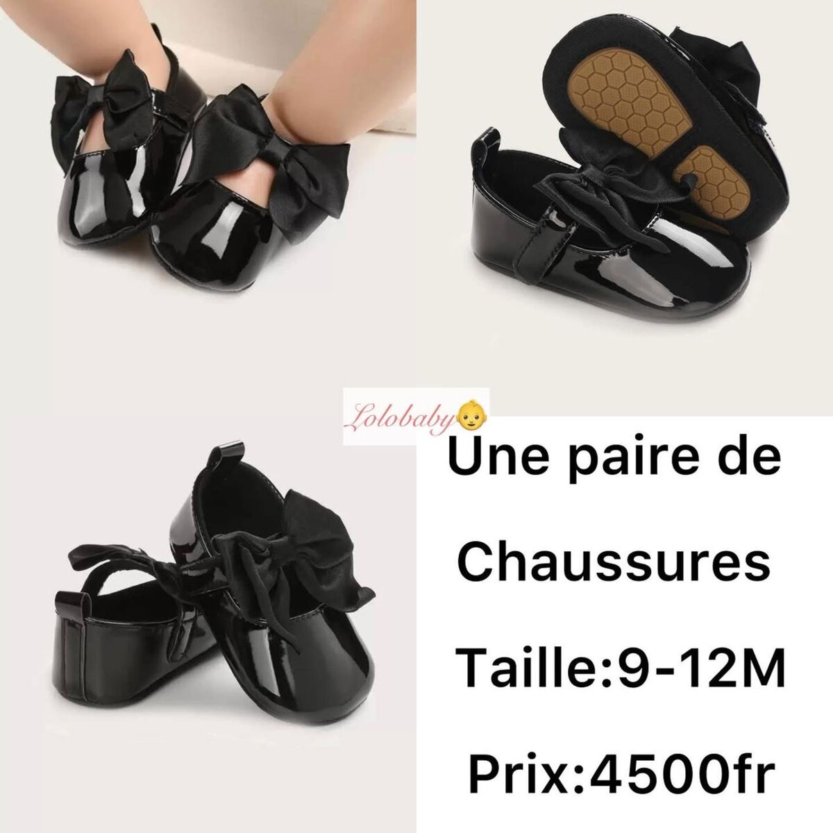 Élégantes chaussures bébé pour filles de 9 à 12 mois, parfaites pour toutes les occasions. Fabriquées avec des matériaux confortables et un joli nœud noir. Parfaites pour compléter la tenue de votre petite princesse.