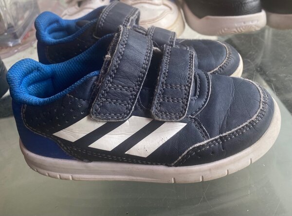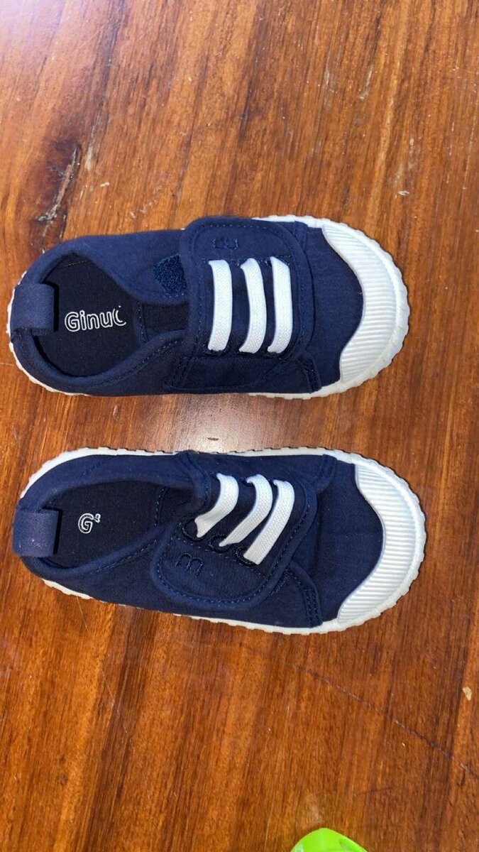 Ces adorables chaussures en toile bleu pour bébé sont parfaites pour les premiers pas. Confortables et légères, elles ont un design à trois bandes blanches et une semelle souple en caoutchouc pour une meilleure adhérence. Idéales pour les sorties et les jeux d'extérieur.