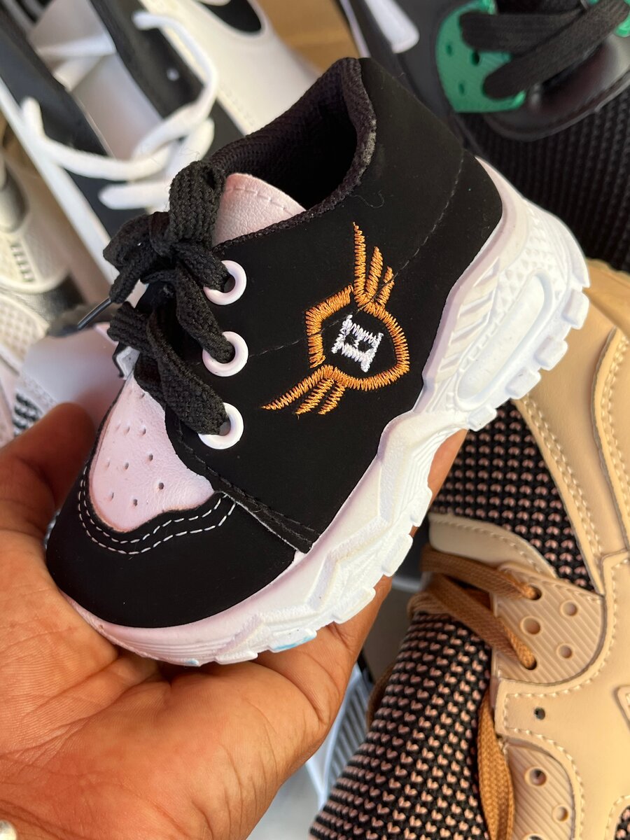 Choisissez ces adorables chaussures de sport noires pour bébé, alliant confort et style pour les premiers pas de votre enfant. Leur design robuste et leur semelle antidérapante assurent sécurité et stabilité. Idéales pour un look tendance au quotidien.