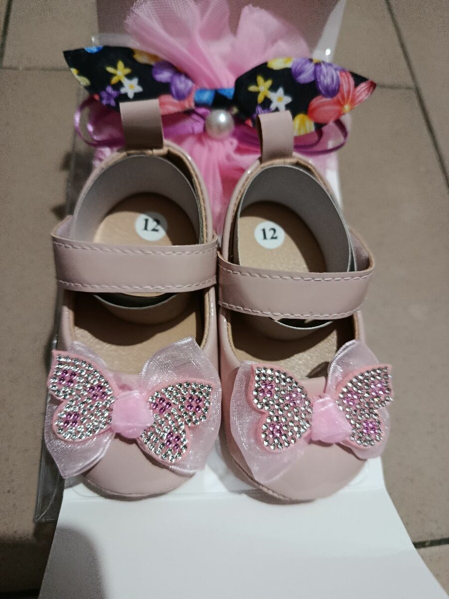 Adorables chaussures pour bébé ornées d'un nœud papillon pailleté rose. Parfaites pour compléter une tenue élégante de petite fille. Confort garanti pour les premiers pas.