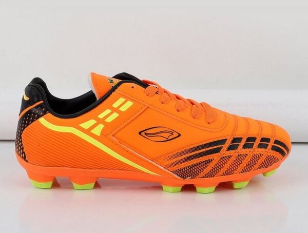 Chaussures de foot homme orange, légères et résistantes, parfaites pour la performance sur tous types de terrains. Neuf, crampons solides.