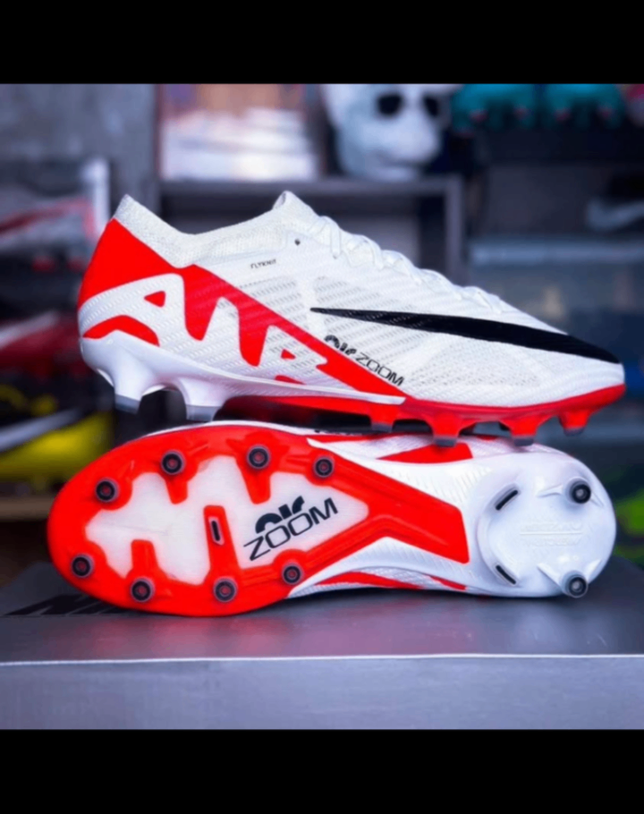 Découvrez les chaussures de football Nike Zoom, conçues pour la performance. Avec leur design blanc et rouge, elles offrent confort et stabilité. Idéales pour les joueurs exigeants, elles améliorent l'accélération et la précision sur le terrain.