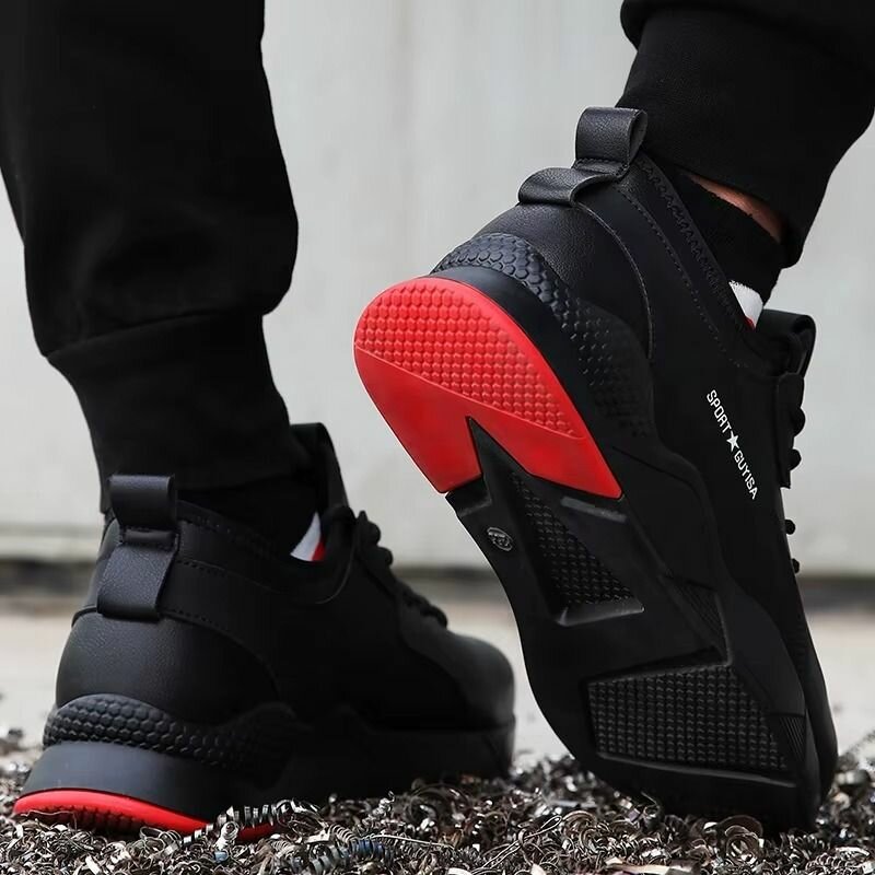 Chaussures de sécurité et sport confortables robustes pour homme et femmes. Semelle en caoutchouc rouge pour une adhérence parfaite. Idéal pour le running et les activités outdoor anti-perforation.