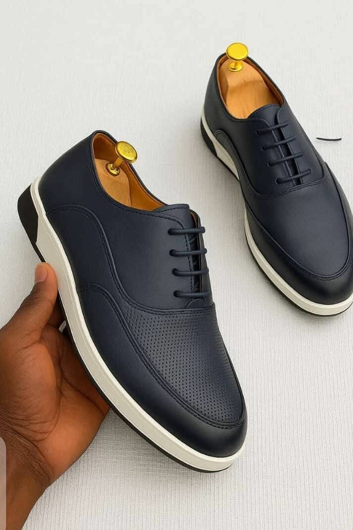 Élégantes et confortables, ces chaussures de ville en cuir noir sont parfaites pour les occasions spéciales ou le quotidien. Semelle blanche et lacets noirs pour un look impeccable.