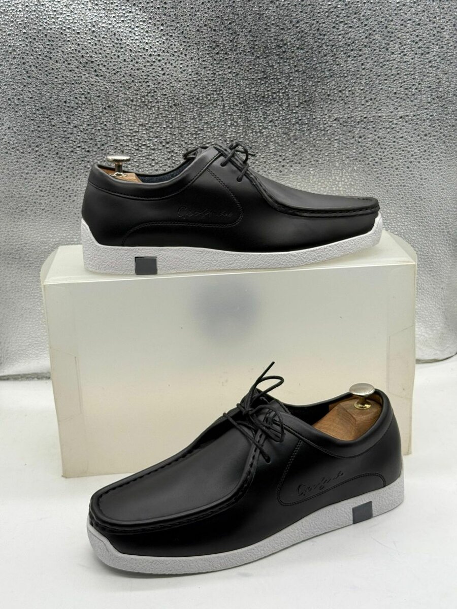 Ces chaussures décontractées en cuir noir combinent confort et style, parfaites pour une allure moderne au quotidien. La semelle blanche assure un contraste élégant, idéal pour toutes occasions.