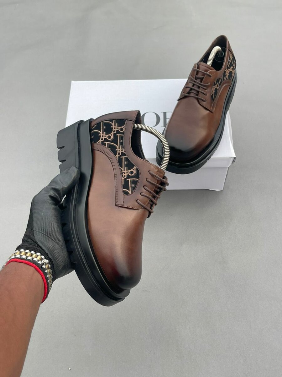 Découvrez le style élégant et sophistiqué avec ces chaussures en cuir pour homme de Dior. Parfaites pour les occasions formelles ou une journée de travail, elles allient confort et luxe. Leur design en cuir brun avec des détails élégants en fait un choix incontournable pour un look raffiné.
