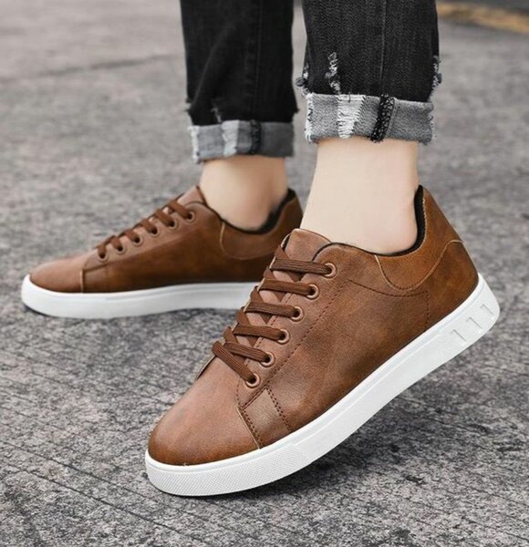 Sneakers marron en cuir pour hommes