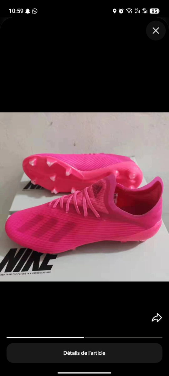 Découvrez les chaussures de football Nike, parfaites pour optimiser vos performances sur le terrain. Leur couleur rose vibrante et leur design moderne vous permettront de vous démarquer. Offrant adhérence et confort, elles sont idéales pour les matchs et les entraînements.