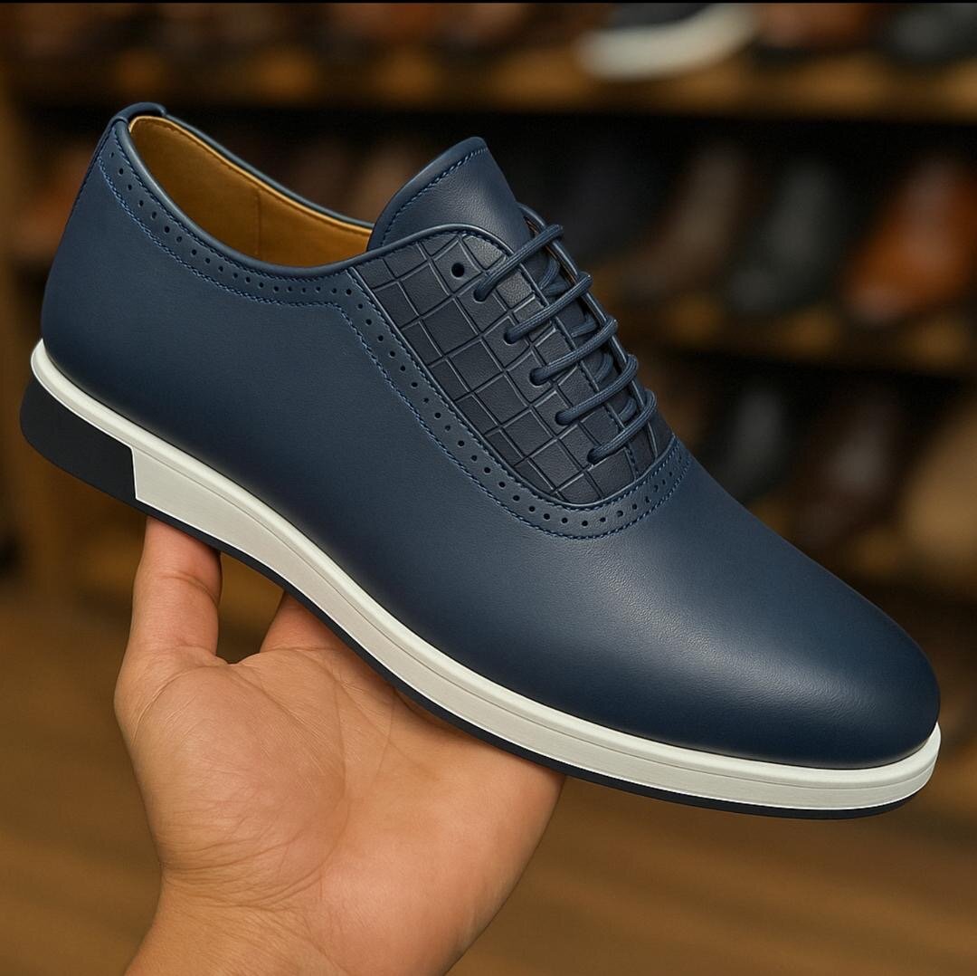 Découvrez ces élégantes chaussures habillées pour homme, parfaites pour un style sophistiqué. Fabriquées en cuir bleu de haute qualité avec une semelle contrastée blanche, elles offrent un confort exceptionnel pour de longues journées. Un choix idéal pour des occasions formelles ou pour ajouter une touche de classe à votre tenue quotidienne. Ne manquez pas l'opportunité de compléter votre garde-robe avec ce modèle incontournable!