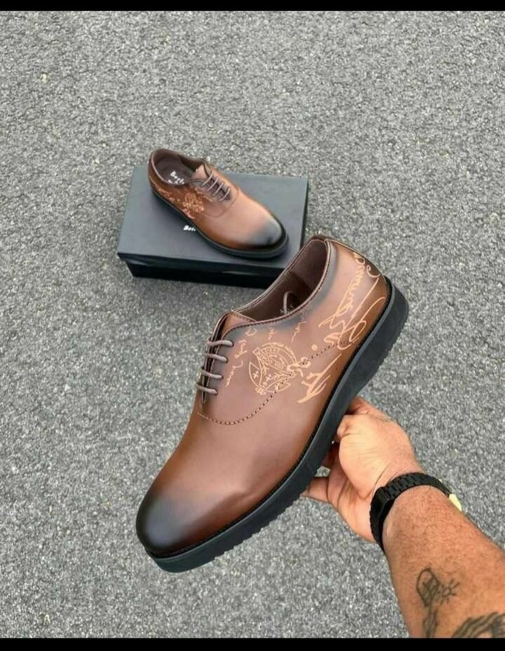 Élégantes chaussures habillées en cuir marron pour homme, parfaites pour les occasions formelles. Confortables et stylées avec des motifs décoratifs, idéales pour les réunions et événements spéciaux. Semelle antidérapante pour un pas assuré.