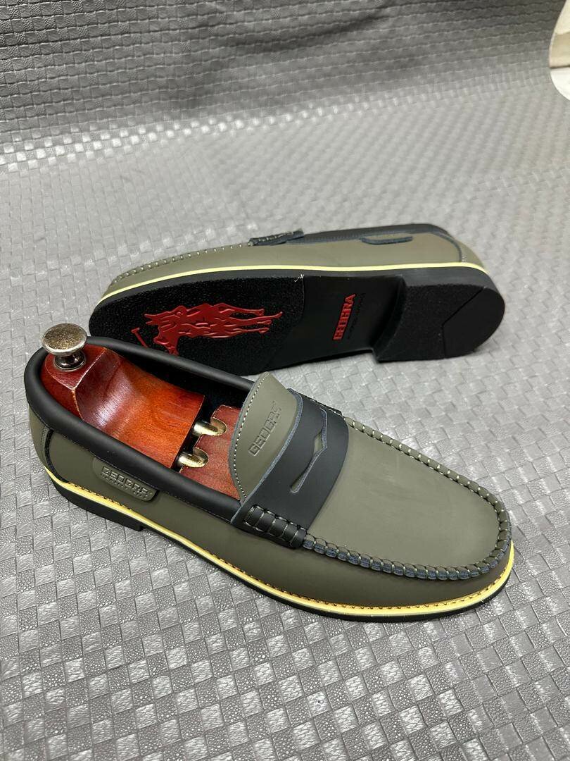 Élégantes chaussures en cuir vert pour homme. Confortables et stylées, elles sont parfaites pour les occasions décontractées ou les tenues habillées. Fabriquées avec des matériaux de haute qualité.