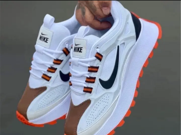 Découvrez ces baskets Nike pour homme, alliant confort et style. Avec leur semelle orange vif et leur dessus blanc, elles sont parfaites pour le sport ou pour un look décontracté. Conçues pour les amateurs de mode et de sport.