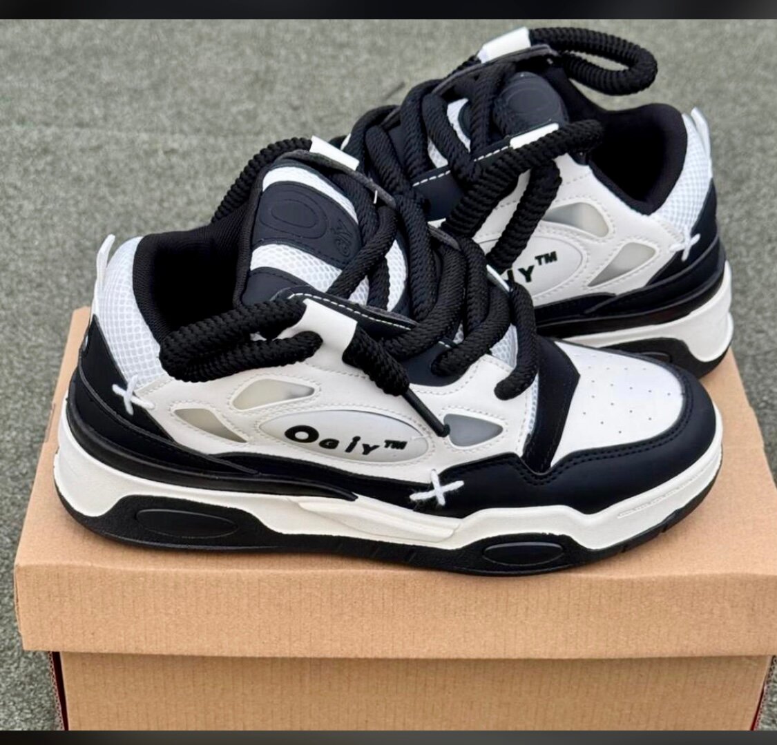 Découvrez ces baskets Ooly blanches et noires, confortables et élégantes. Fabriquées avec des matériaux de qualité, elles sont idéales pour un usage quotidien. Leur design moderne et tendance les rend parfaites pour toutes les occasions.